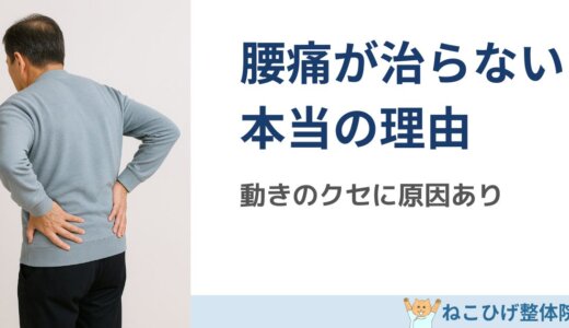 ねこひげ整体院https://nekohigeseitaiin.com島原市の慢性腰痛・ひざの痛み専門整体院Tue, 14 Oct 2025 10:07:56 +0000jahourly1https://nekohigeseitaiin.com/wp-content/uploads/2025/04/cropped-site-icon-32x32.pngねこひげ整体院https://nekohigeseitaiin.com3232 整形外科で治らない腰痛──その本当の理由は「動きのクセ」にありますhttps://nekohigeseitaiin.com/youtuu-cause/Tue, 14 Oct 2025 09:58:28 +0000https://nekohigeseitaiin.com/?p=3334
